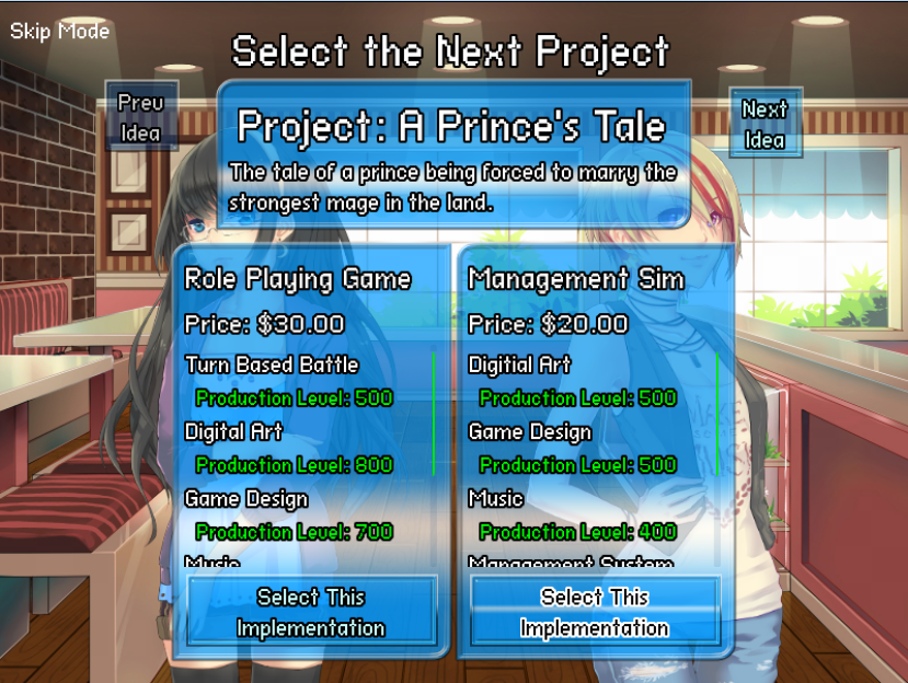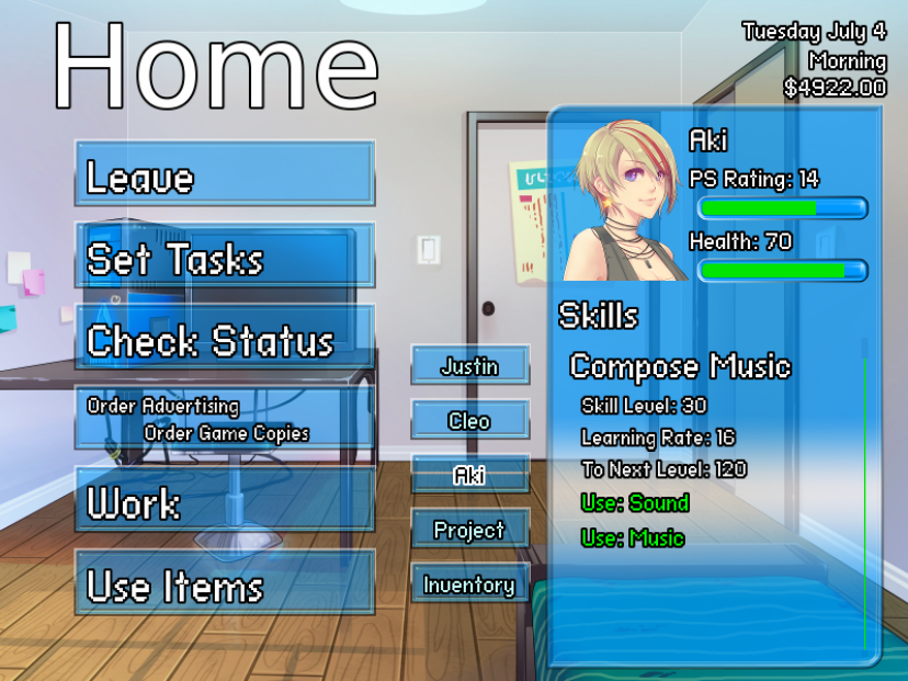 Play the role of Justin a high school student as he embarks on his dream journey to become a game developer. Having just won a programming contest he enlists the aid of Cleo the artist and Aki the music composer. How will the team grow and take on the hardships along the way?